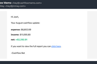 idea: monthly email reminder showing how much you spent, made, and the difference