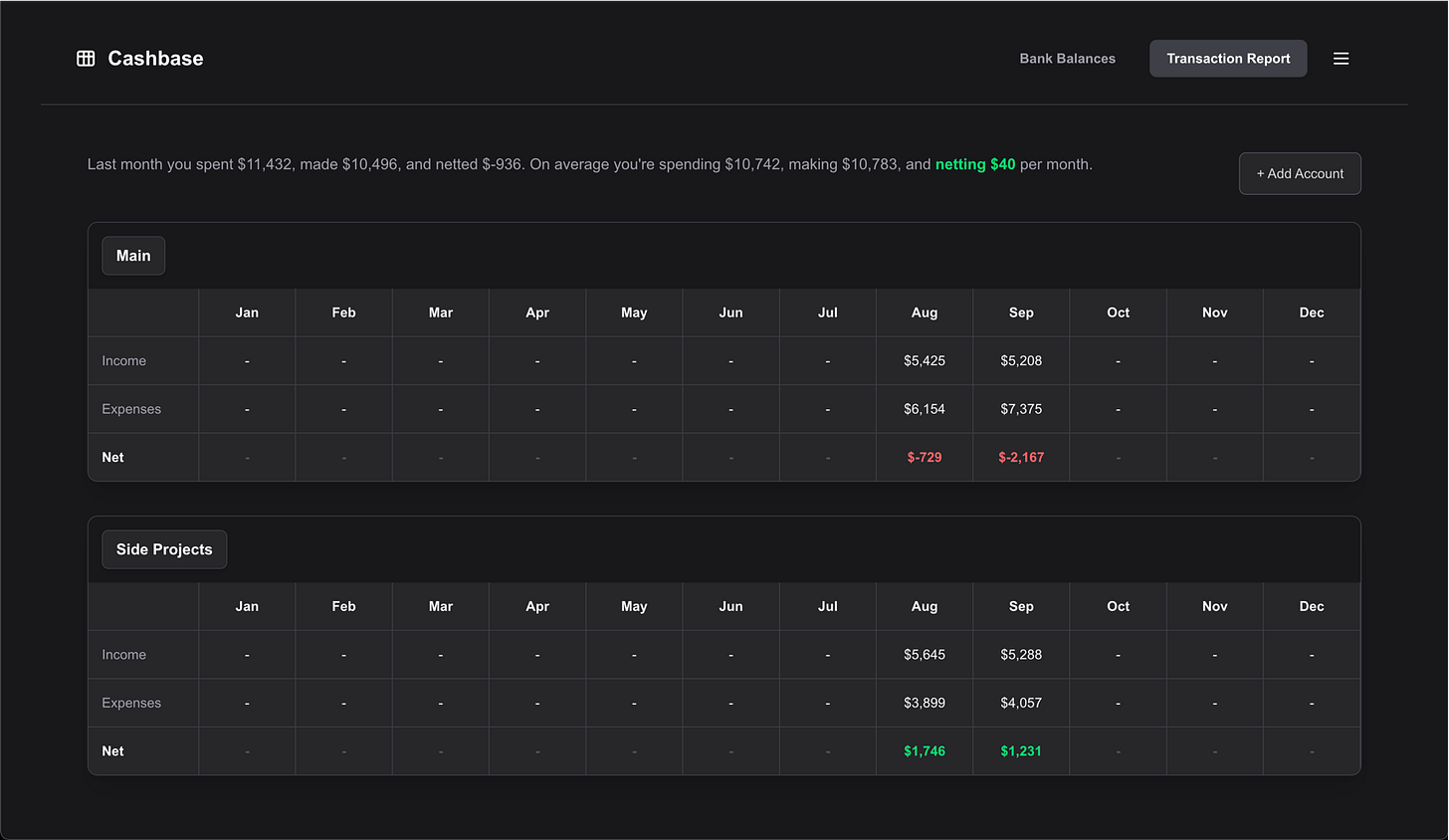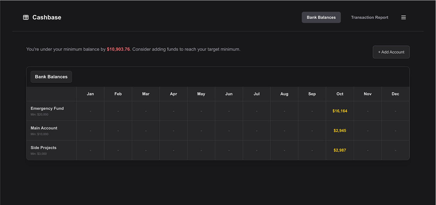 idea: this tool does two things. one, it aggregates your personal finance data (credit cards and bank info) into one dashboard. and two, it sends you a monthly email showing you how much is in your bank and if youre above or below the bank account minimums youve set.